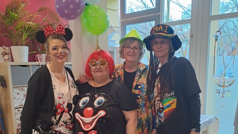 Helau aus dem Café Schließfach! Besucherinnen und Mitarbeiterinnen haben Karneval mit ganz viel Herz gefeiert.