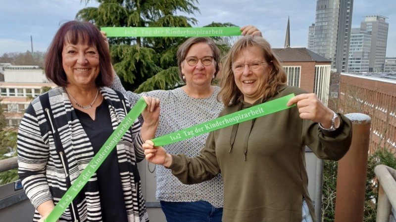 Zum bundesweiten Tag der Kinderhospizarbeit heute zeigt unser Team des KinderPalliativNetzwerks (KPN) - Wilma Neuwirth, Abteilungsleitung Hospiz- und Palliativversorgung für Kinder und Erwachsene, Steffi Rhein, Leitung KinderPalliativNetzwerk Essen, und Simone Urban-Rathai, Pflegerische Leitung im KinderPalliativTeam - mit den obligatorischen grünen Bändern, dass Familien mit lebensverkürzend oder lebensbedrohlich erkrankten Kindern, Jugendlichen und jungen Erwachsenen die Solidarität der Gemeinschaft brauchen.