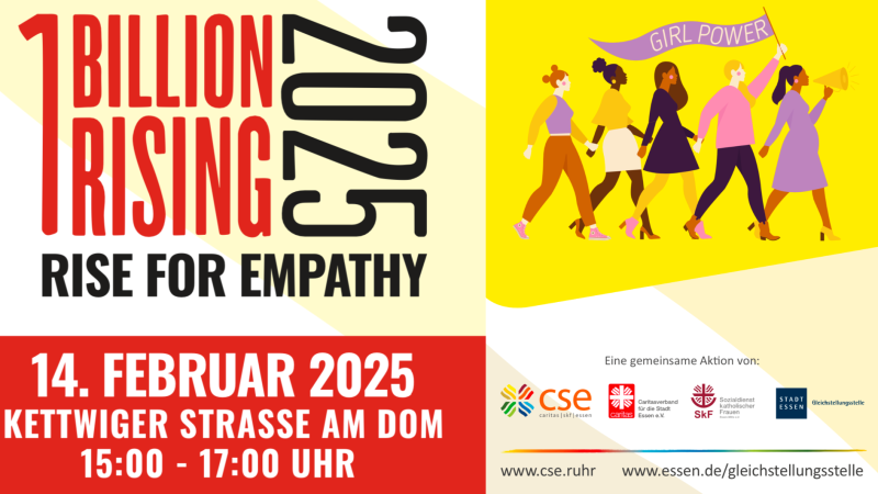 Die weltweite Kampagne „One Billion Rising“ ("Eine Milliarde erhebt sich") für Gleichstellung und ein Ende der Gewalt gegen Frauen und Mädchen ruft am 14. Februar 2025 zum gemeinsamen Aufstehen und Tanzen auf.