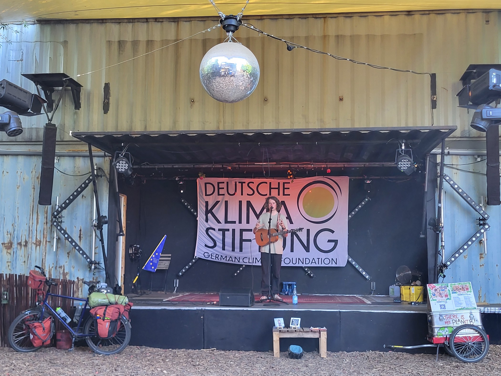 Die Veranstaltung fand auf dem idyllisch grünen Gelände des Kulturorts „Irgendwo” statt, der wie geschaffen ist für Austausch, Inspiration und Zukunftsvisionen. Das Festival bot ein buntes und abwechslungsreiches Programm mit kreativen Workshops, spannenden Ausstellungen wie „Klimaflucht“ und fesselnden Vorträgen, beispielsweise von den Psychologists for Future zum Thema Klimagefühle, sowie lebhaften Diskussionen über die Herausforderungen und Chancen des Klimawandels. Auch musikalisch setzte das Festival starke Zeichen: Der Musiker Erik Stenzel berührte mit seinen kritischen Songs und schuf Raum für Reflexion und Motivation zugleich. Mit vielen neuen Eindrücken, Impulsen und Ideen im Gepäck ging es für Agata Holubowska zurück nach Essen – inspiriert von einem Tag voller Engagement, Kreativität und klimapolitischer Leidenschaft.