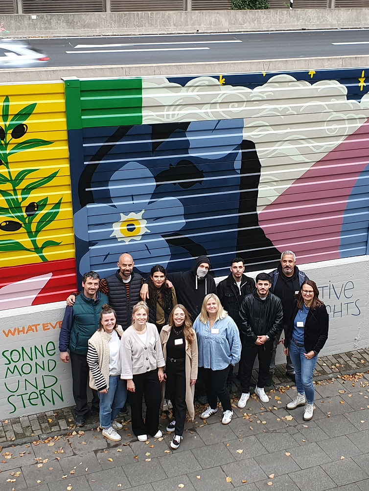Nach intensiven Wochen kreativer Arbeit und engagiertem Miteinander wurde das gemeinschaftlich gestaltete Kunstwerk feierlich der Öffentlichkeit präsentiert. Entstanden ist einzigartiges Wandbild, das mehr ist als nur Farbe auf Beton: Es ist ein sichtbares Zeichen für Vielfalt und Zusammenhalt im Stadtteil entstanden, gestaltet von und für die Menschen im Viertel. „WallArt zeigt, wie kreative Stadtentwicklung gelingen kann, wenn Menschen beteiligt und ihre Perspektiven sichtbar werden“, so Tanja Rutkowski, Fachbereichsleitung Soziale Dienste, Gefährdetenhilfe und Quartierentwicklung bei der Caritas-SkF-Essen.
