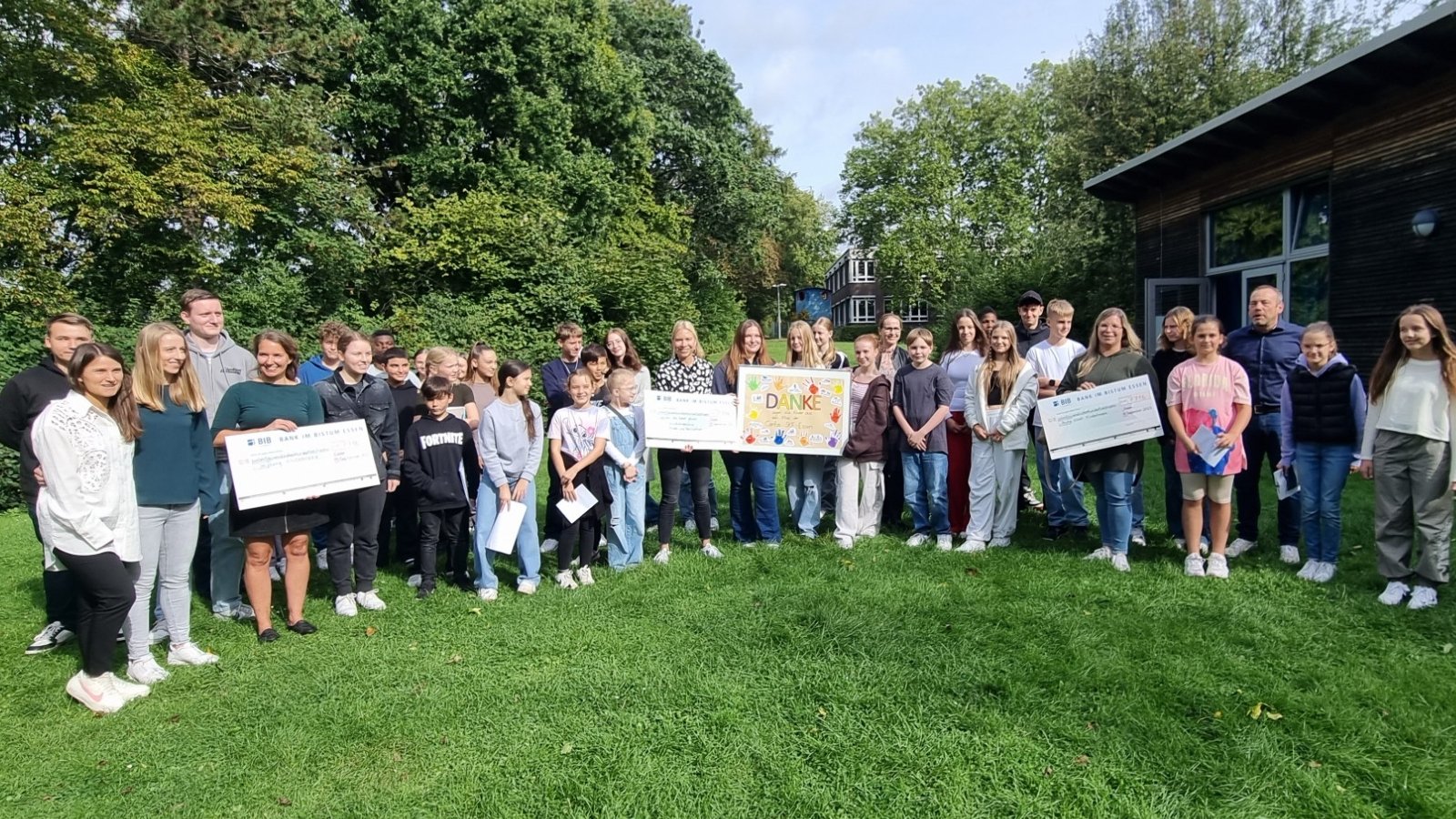 Insgesamt hatten die Schülerinnen und Schüler beim Solilauf 23.148 Euro erlaufen, die nun zu gleichen Teilen an die Arche Noah, das Projekt KinderHerz und unsere beiden Projekte gespendet wurden. Unsere Fachbereichsleitung Bildung & Betreuung Tanja Sager sowie die Teamleitung der Kinder- und FamilienTISCHE Astrid van der Heyden nahmen die symbolischen Schecks von den Schülervertreter:innen entgegen. Sie erläuterten auch, wofür die Spenden verwendet werden und wie wichtig sie für die Umsetzung unserer Arbeit sind. Wir freuen uns riesig, dass die Schülerinnen und Schüler sich für diese Projekte einsetzen.