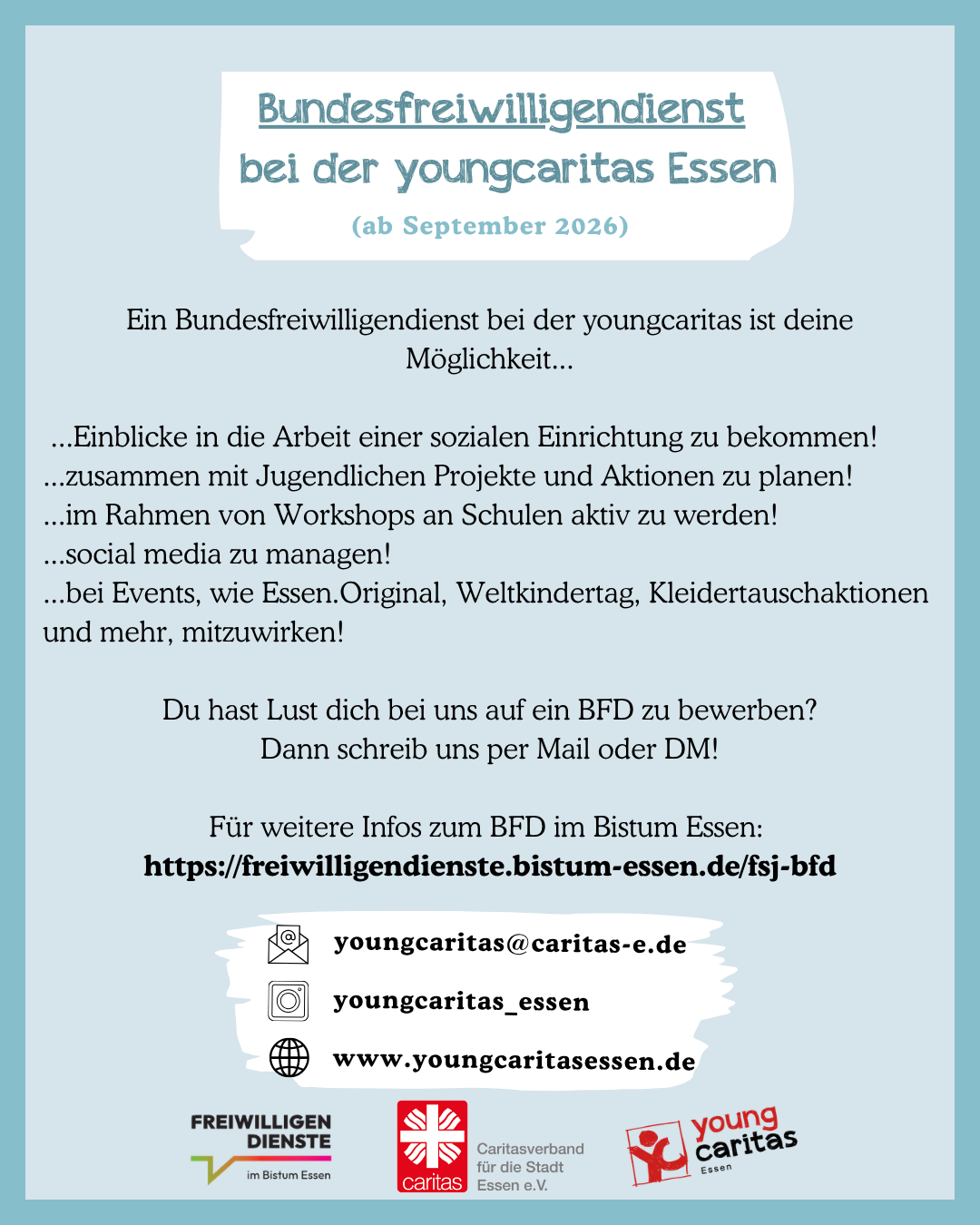 Aktuelle Informationen rund um youngcaritas Essen gibt es auf Instagram @youngcaritas_essen